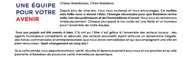 Tribune du groupe d'opposition "Brebières Avec Vous"